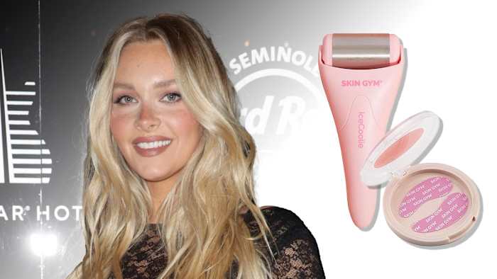 In an Instagram story from the day, she shared a snap of herself using both a pair of reusable under eye patches, which she recommends freezing before use, and an ice roller to de-puff.